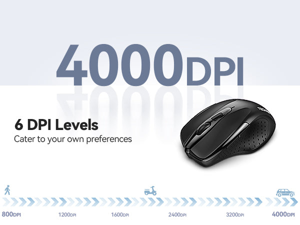 This computer mouse has 6 DPI adjustable levels 800/1200/1600/2400/3200/4000 for you to change the sensitivity depend on your activities.