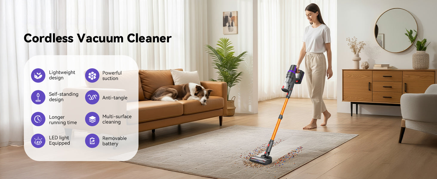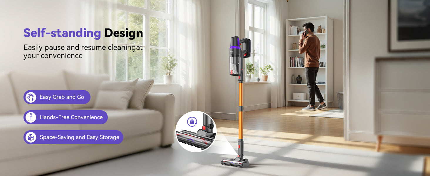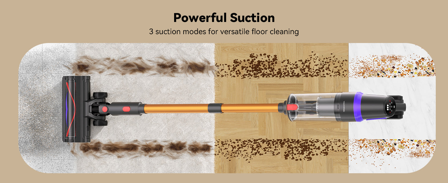 Powerful Suction Stick Vacuum with Tangle-Free Brush, Up to 60 Min Runtime, 8-in-1 Versatile & Self-Standing for Hardwood Floors, Carpets, Pet Hair