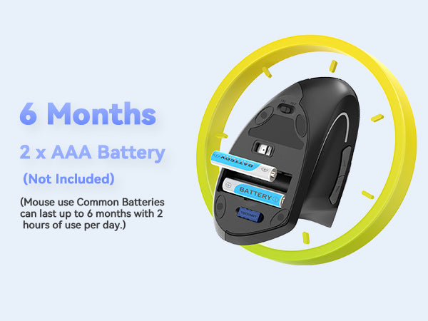 The wireless mouse for laptop has low energy consumption and enters sleep mode after a few seconds of inactivity. Pressing any button will wake it up, with up to 24 months of battery life. When the battery is low, an LED light will flash. (2 X AAA batteries not included)