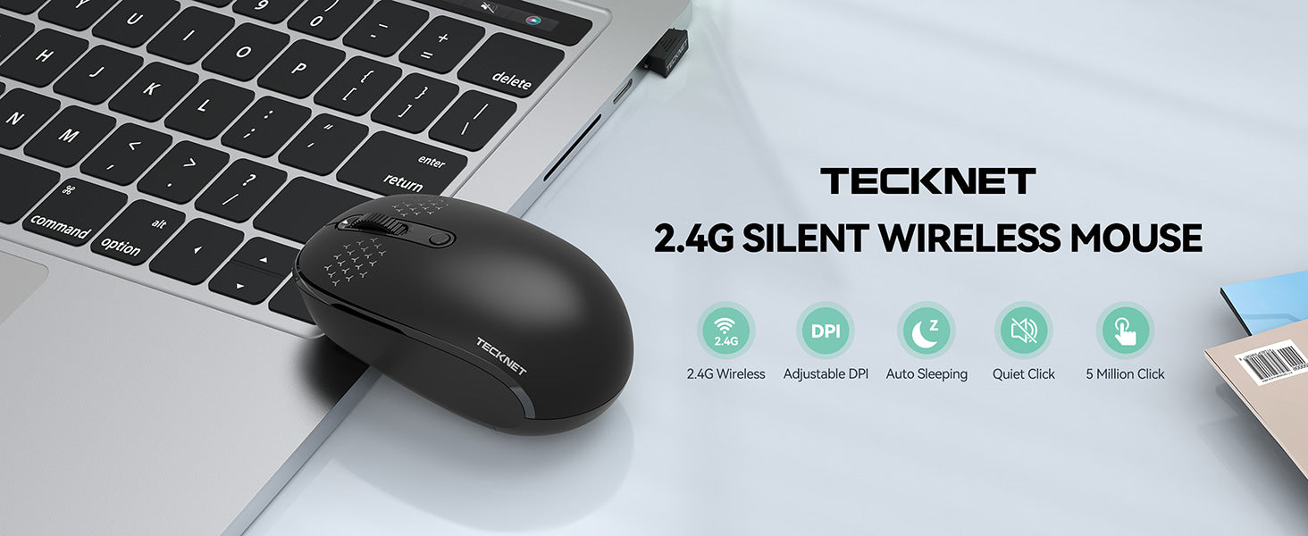 TECKNET Wireless Mouse is a wireless mouse for Chromebook, notebook, PC and Mac, using 2.4G wireless technology and equipped with a USB receiver to ensure a stable connection. With 4 buttons and adjustable 800/1200/1600 DPI, it provides a precise operating experience. The mouse is compactly designed for easy carrying and silent clicking, suitable for users who need a quiet environment, and is an ideal choice for daily office and travel.