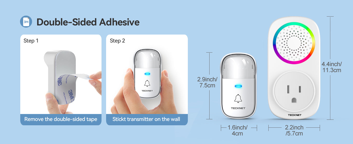 The wireless door bell plug in receiver features a bright RGB light that makes bells highly visible, making this wireless doorbell ideal for the hearing impaired. Besides serving as a door chime & bell, this device also functions as a pager for the elderly and pregnant women, suitable for different scene.