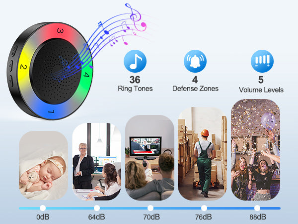 Choose from 36 melodies, 5 volumes, and 4 zones with unique ringtones. Easily tell a delivery from a trespasser.