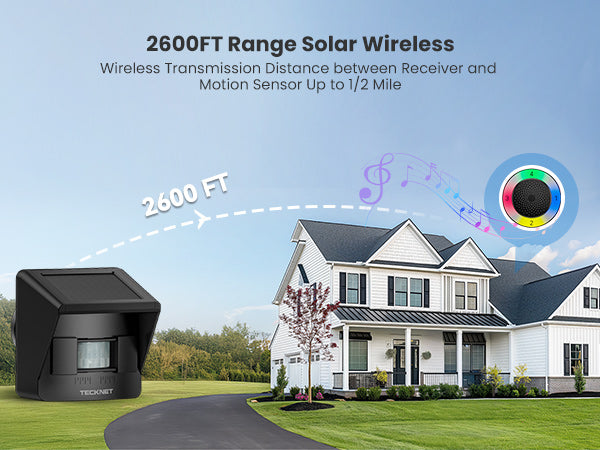 2600FT Long Range & 36 Melodies & 5 Volumes and Supports 4 Zones Weatherproof Motion Sensor Alarm to Protect Inside /Outside Property (1 Receiver 1 Sensor)
