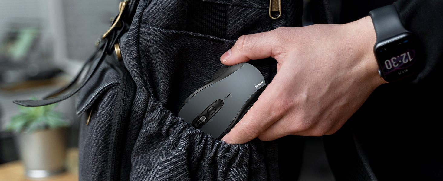 TECKNET Wireless mouse for laptop with 5 levels adjustable DPI - 4800/2000/1600/1200/800, easily change the cursor sensitivity depending on your need. It features 2.4GHz technology, supports plug and play - No need for a driver, and has a working range of up to 10 metres (33 feet)