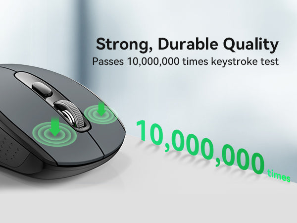 The wireless mouse for laptop passes the 10,000,000 times keystroke test to guarantee extra durability, The wireless computer mouse's silent button allows you to work in a quiet environment without worrying about disturbing others.