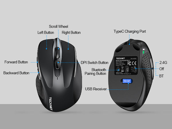 Upgrade your productivity and gaming experience with the TECKNET Rechargeable Wireless Mouse. Offering seamless Bluetooth 5.0/3.0 and 2.4G wireless connectivity, this mouse provides fast, stable connections across multiple devices. With a precise 4800 DPI sensor, you can enjoy smooth control and accuracy, whether for work or play. The rechargeable battery ensures long-lasting performance