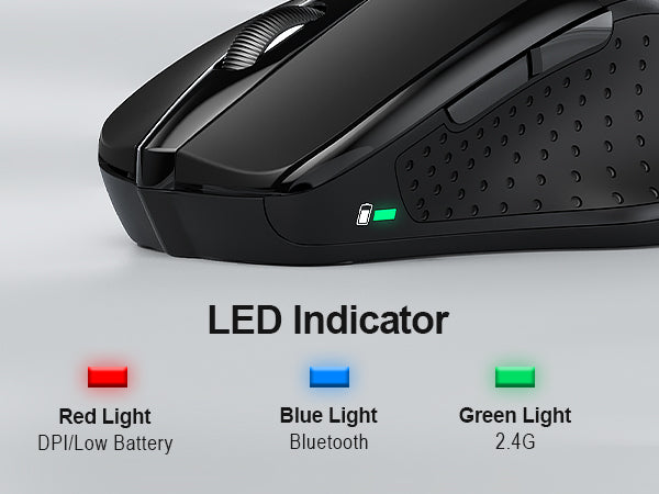 The mouse is equipped with an energy-saving switch and intelligent sleep mode to effectively save power. The battery life of the mouse can reach up to 30 months, minimizing the need for frequent battery replacement. The battery indicator light will remind you when it is time to replace the battery. (Battery life depends on usage and environmental conditions)
