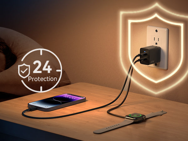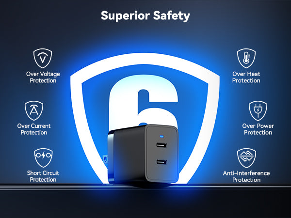 Built-in safeguards of this dual usb c wall charger protect your devices against excessive current, overheating and overcharging. The shell (ABS+PC) makes the usb-c charger a more sturdy design for long using lifespan.