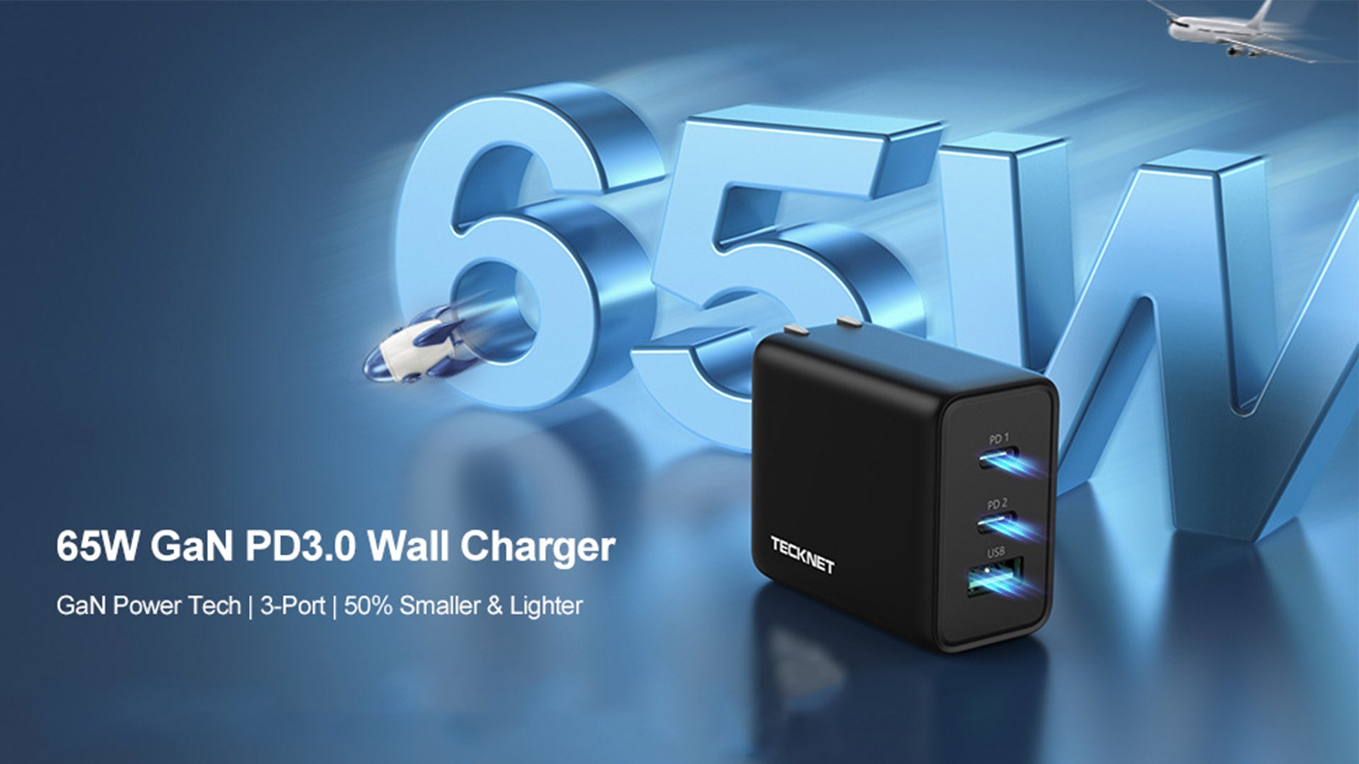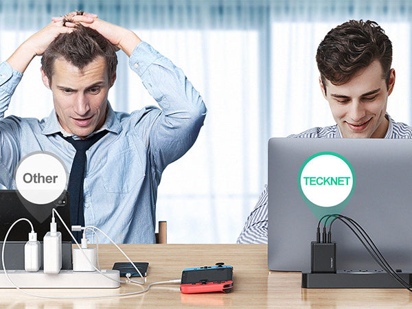 TECKNET utilizes the industry-leading GaN Chip to better power, operates up to 100x faster than old, slower silicon semiconductors, delivering 3x faster charging.
