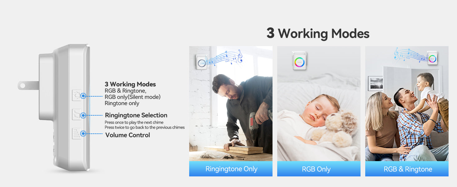 Simply attach the wireless doorbell button with screws or double-sided tape, then plug in the receiver to start using it immediately. — No wires or tools needed, and installation takes just minutes.