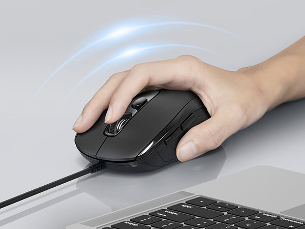 Curved design and thumb rest help reduce hand fatigue. Ruber grip on side of the laptop mouse help reduce slippage, offering super comfortable hand feeling.