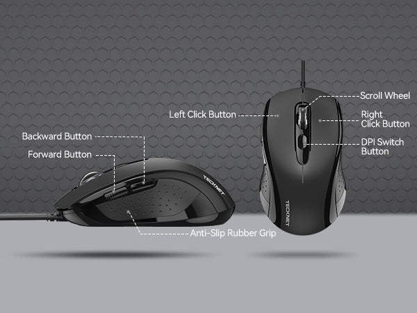 TECKNET Ergonomic 3600 DPI USB Wired Mouse