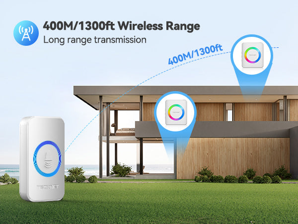 Our wireless doorbell offers an impressive 1300FT/400M range, ensuring full coverage for any home size. With easy installation and reliable performance, it provides the convenience and security. Perfect for homes, offices, classrooms, hospitals, restaurants, and factories,