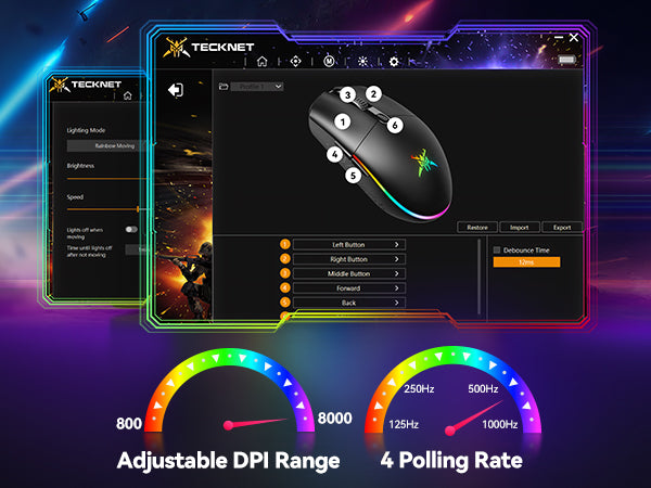 TECKNET Wireless Gaming Mouse with 8000 DPI & 6 Programmable Buttons