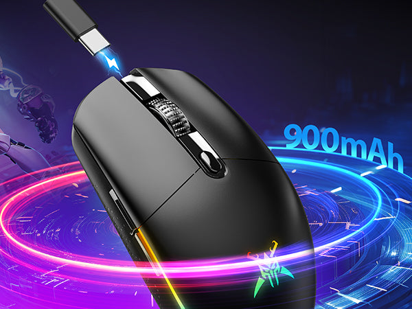 Enjoy the flexibility of both wired and 2.4G wireless modes. Whether you're at home or on the go, this gaming mouse features a 1ms report rate for lag-free, fast-paced action. With a 10-meter wireless range and low power consumption, you can play for hours without interruptions.