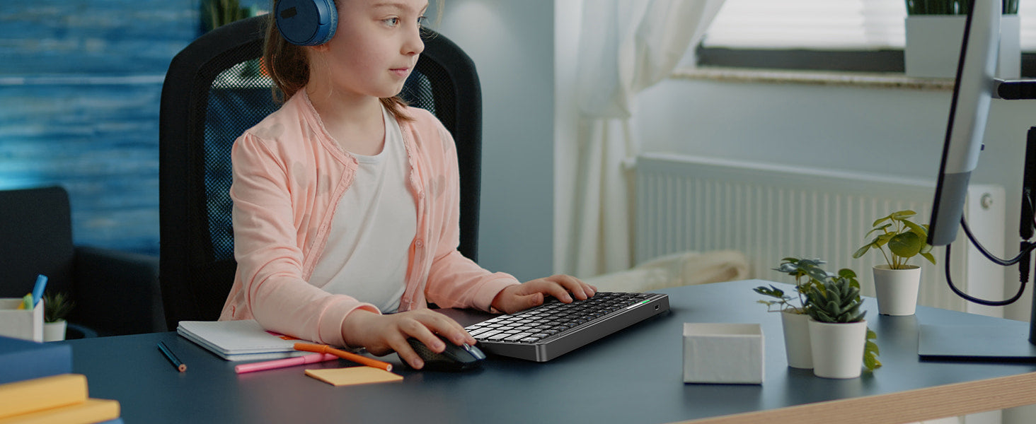 With its lightweight and compact design, the small wireless keyboard (29cm/11.41in x 13cm/5.11in x 1.5cm/0.6in, weighing 256g/0.21lb) easily fits into your laptop bag. This travel keyboard is perfect for use at home, in the office, or while traveling.